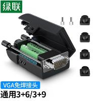 绿联(UGREEN)VGA免焊接头3排15针插头 工程级3+6+9公头DB15转接头 黑色免焊头