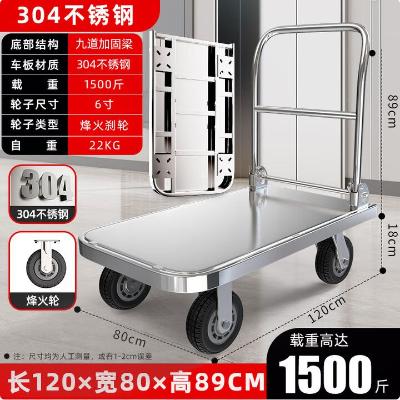 奂萃 304钢板小推车防锈小拉车 304级120*80 载重1500斤 6寸烽火刹
