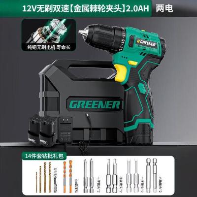 绿林(GREENER)无刷手电钻 手枪钻 多功能冲击打孔 充电双速转【12V无刷】2.0AH 1充+礼包