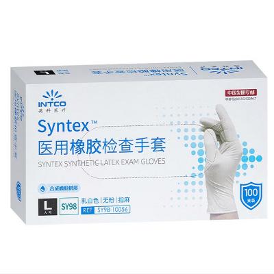 英科医疗(INTCO)一次性手套乳胶手套 100只 白色检查手套