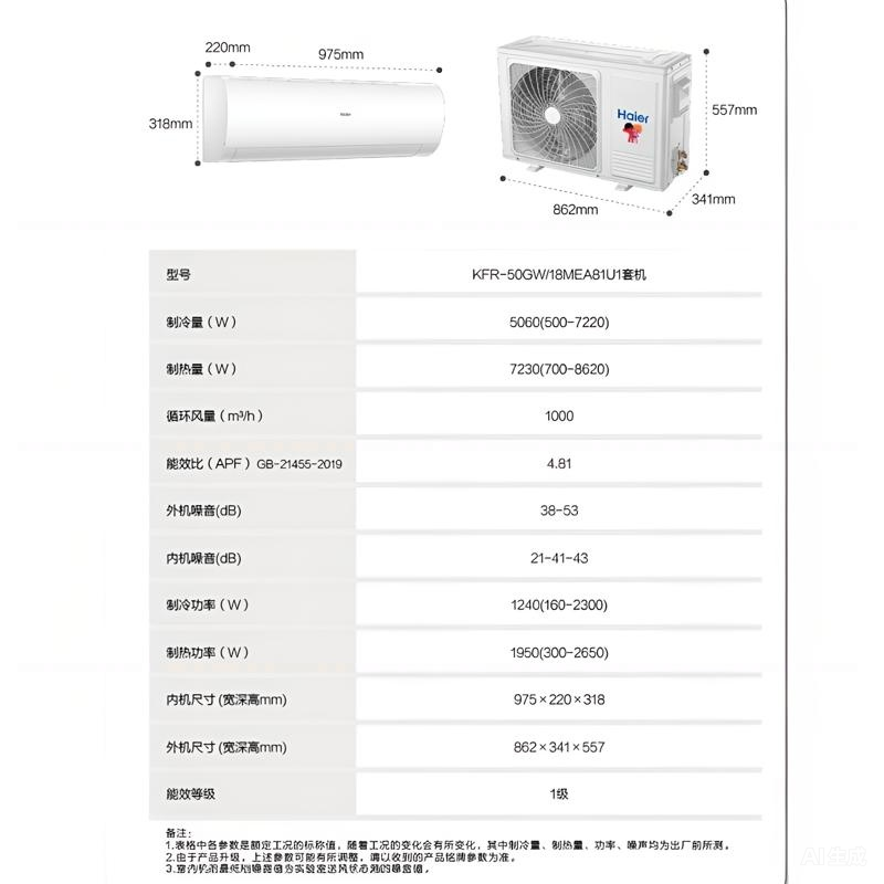 海尔 KFR-50GW/18MEA81U1 (一级能效 冷暖 变频 2匹) 海尔 KFR-50GW/18MEA81U1 (一级能效 冷暖 变频 2匹)商品名称:海尔 KFR-26GW/A0MCC82 壁挂式空调机(二级能效 冷暖 变频 1匹 ) |